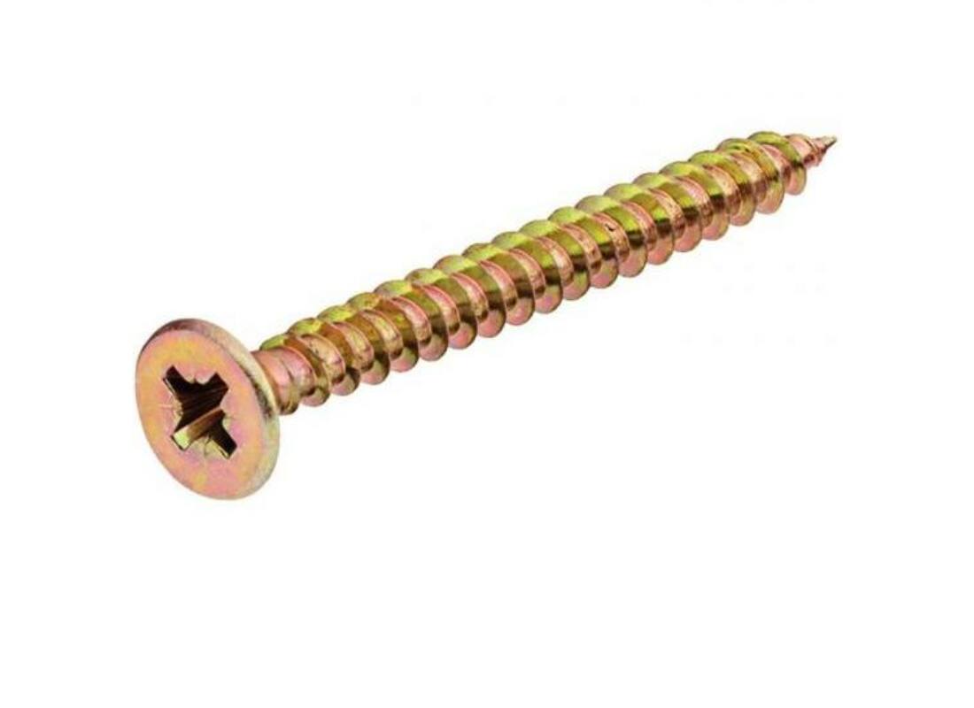 FőkategóriákDIN 7505 Süllyesztettfejű, faforgácslap csavar, Acél, Sárga horganyzott, 2,5x20